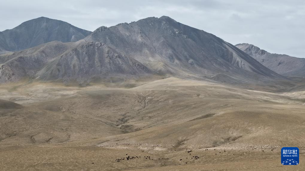9月9日,在青海省海西蒙古族藏族自治州都兰县,牧民赶着牛羊从秋季草场出发,前往冬季草场(无人机照片)。新华社记者 齐芷玥 摄