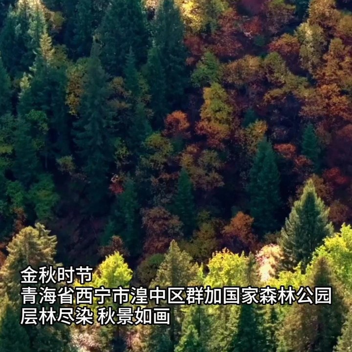 金秋时节,青海省西宁市湟中区群加国家森林公园层林尽染,秋景如画。红黄绿交织的彩叶连团成片,勾勒出一幅色彩动人的生态画卷。